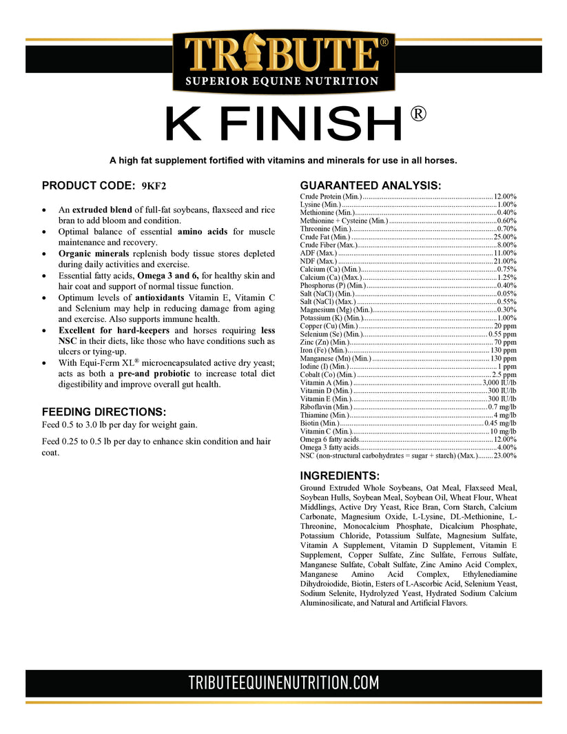 • 25% fat blend of full-fat soybeans, flaxseed and rice bran to add bloom and condition.