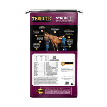 New and improved! Synergize is a high fat (13%), low sugar and starch (NSC) horse feed for hard-keeping and hard-working horses. This feed is fortified with Constant Comfort®, a premium seaweed derived calcium that promotes a healthy gastric pH to support horses at risk of ulcers and digestive upset, and now, Uptake Technology™, a powerful blend of ingredients that improve nutrient absorption!